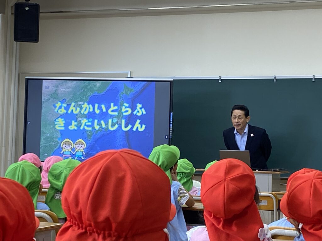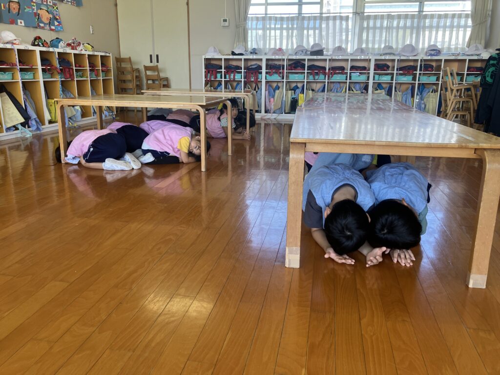 2025年10月10日 #トピックス 10月10日(金曜日) 大学合同避難訓練がありました。 放送後は、机の下で身をまもります。 揺れがおさまると、園庭に避難です。 大きな津波の時は、大学へ。 年長児から、落ち着いて出発しました。 年少児は、支援者の大学生に手をつないで もらって、いきましたよ。 大学7階まで着くと、先生が南海トラフや津波の 起きる仕組みについて、分かりやすくお話しして くださいました。 幼稚園では、いざという時に、自分の 命が守れるよう訓練をしています。 ハサミであそんだよ2025年10月7日 関連記事 2021年06月24日 #トピックス ドッヂボール 6月24日木曜日、ドッヂボールをしている様子です。 リズム室のコートを使って […] 2025年09月01日 #トピックス 始業式始業式 9月1日(月) 2学期の始業式がありました。 久しぶりにお友だちに会えて 嬉 […] 2024年03月21日 #トピックス 終業式 3月19日(火曜日)年少組と年中組の終業式を行いました🌸 み […]