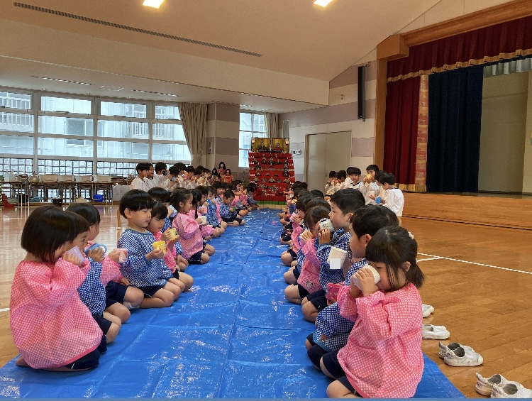 2026年03月03日 #トピックス 3月3日(火曜日) おひな祭りに、集まりました。 みんなで、白酒みたいな白い飲み物 をいただきました。 満3歳児入園式2026年3月2日3.5歳児お別れ会2026年3月5日 関連記事 2019年10月21日 #トピックス 徳島文理小学校との交流会 10月21日月曜日、徳島文理小学校との交流会がありました。 一年生のお兄さん […] 2025年03月19日 #トピックス ひよこぐみ修了式 3月19日水曜日 満3歳児ひよこぐみさんの修了式を行いました。 「むすんでひ […] 2024年06月29日 #トピックス お店やさん祭り・年中児 6月29日(土曜日) 今日は、年長児がお店や祭りに 年中児を呼んでくれまし […]
