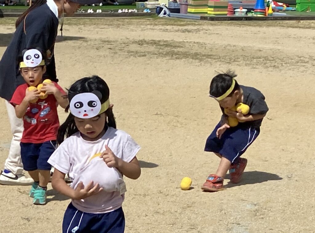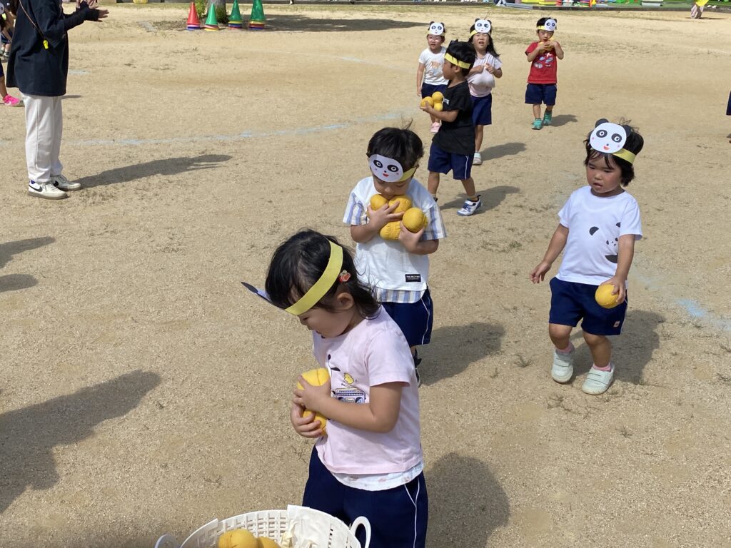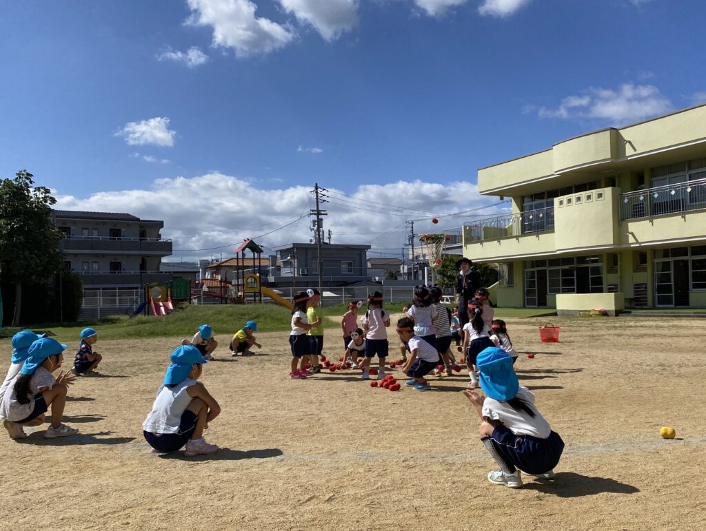 玉入れあそび 2025年10月09日 #トピックス 10月9日(木曜日) 年少児が玉入れあそびをしました。 玉入れで遊んだ後は、玉集めです(*^_^*) みんな落とさないように、そ~っと歩いていましたよ💪 「あっ 落としちゃった💦💦」 手を伸ばして 「と・・・り・・・た・・・い・・・。」 おなかに、い~~ぱい入れている子も・・・。 いっぱい集めようとしているお友達の 一生懸命さが、とってもステキでした✨✨ ハサミであそんだよ2025年10月7日2025年10月10日 関連記事 2017年07月19日 #トピックス 7月の作品 (年少児の作品)ひまわり風鈴。 海の中はあわぶくでいっぱい! […] 2022年11月12日 #トピックス 誕生会 11月12日土曜日、10月11月生まれのお友だちの誕生会をしました。 お友だ […] 2024年06月15日 #トピックス 見学説明会 6月15日(土曜日) 入園見学説明会を行いました。 卒園児のお家の方も、お子 […]