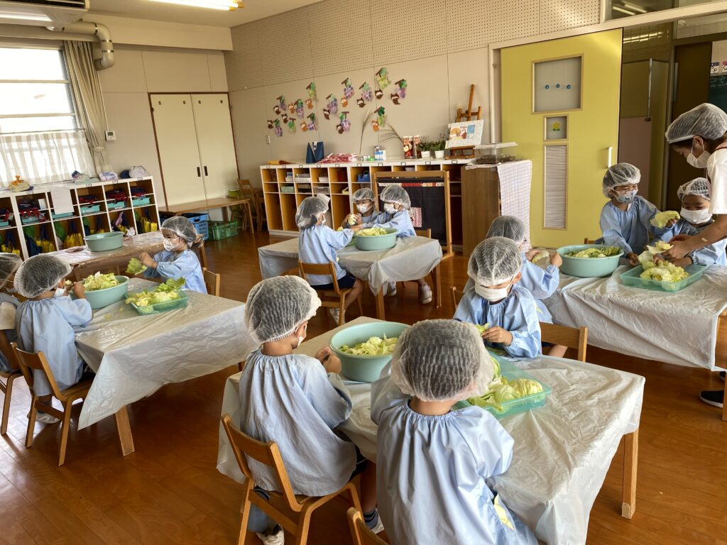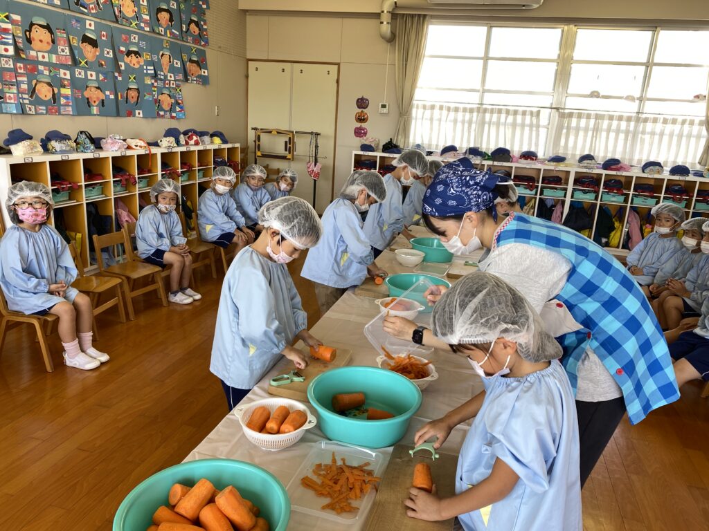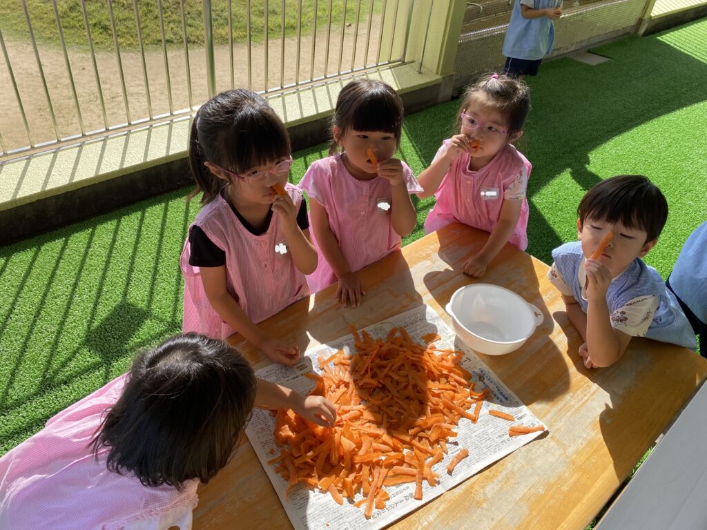 カレー・サラダづくり 2025年10月17日 #トピックス 10月17日(金曜日) クッキングデーでカレー・サラダを作りました。 年中組はサラダ担当! レタスをちぎってハムを切ったよ✨ 年長児は、野菜担当! カレーに入れる野菜をみんなで切っていったよ。 年長児が剥いたにんじんの皮を置いていると 年少児が手にとってクンクン・・・。 食べる担当の年少児さん! とってもいいお顔で「はやく食べた~い😄」 おかわりいっぱいしてくれました。 年長児さんは、クッキングがすんだ後 みんなできれいに道具を洗いました。 口腔保健実習2025年10月16日 関連記事 2020年10月07日 #トピックス 文理小1年生との交流会 10月7日水曜日、文理小学校1年生と年長組との交流会をしました。 園庭で拾っ […] 2017年10月26日 #トピックス ハロウィンパーティー 10月26日木曜日、ハロウィンパーティー🎃をしました。 徳島 […] 2024年11月13日 #トピックス ほしぐみ 美感教育 11月13日(水曜日) 5歳児ほしぐみの美感教育がありました。 今日はプロジ […]
