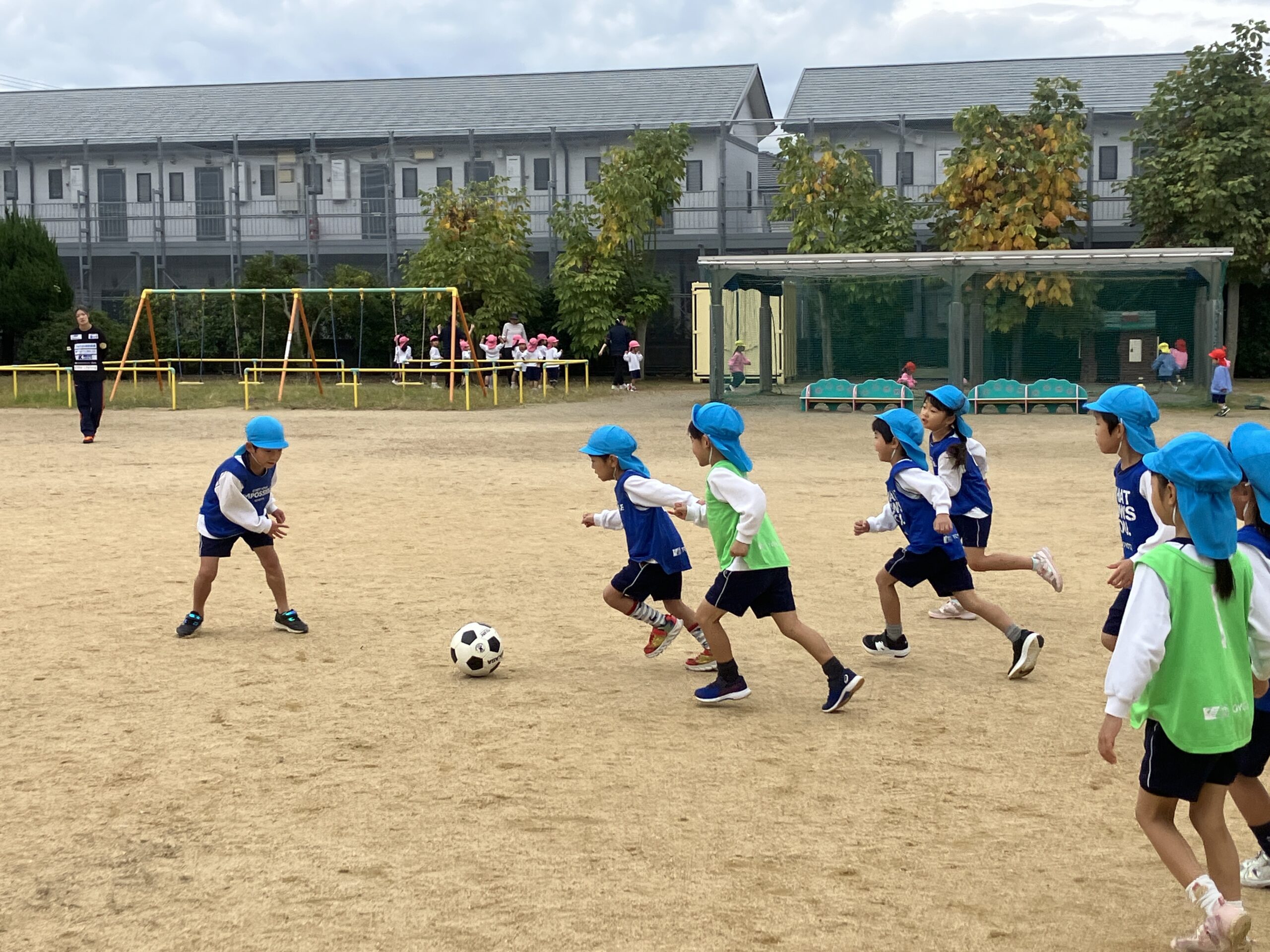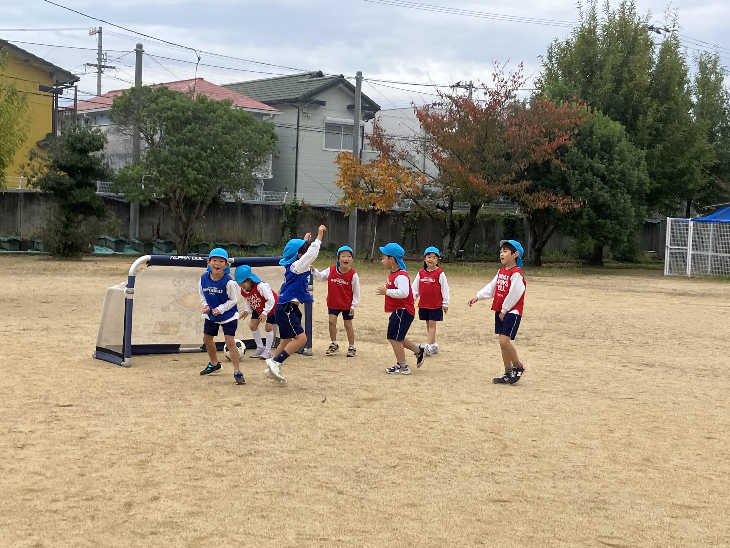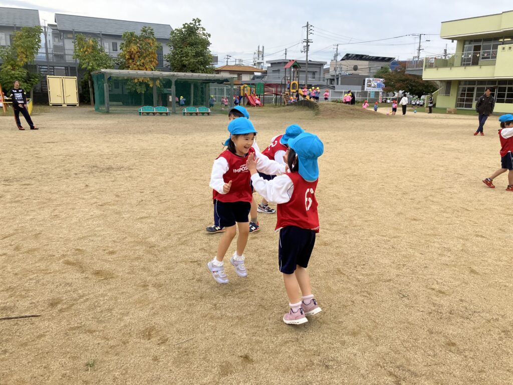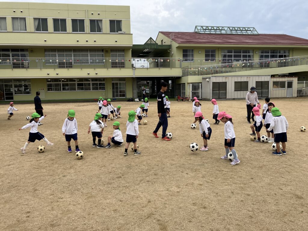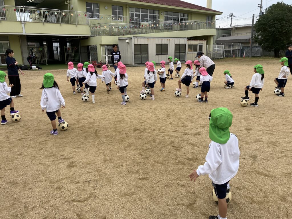 第2回キッズサッカー巡回指導教室 2025年11月13日 #トピックス 11月13日(木曜日) 第2回キッズサッカー巡回指導 教室がありました。 ボールを止めたり、足の裏で 転がしたりと前より少し慣れた 様子でした😊 年長児の試合では、ボールをよく見て ゴールを目指していたよ⚽ シュートが決まる場面では、ガッツポーズや ハイタッチで喜ぶ姿が見られました🙌 ゴール出来るとやっぱりうれしい~~💓 また、一緒にチャレンジしようね! 4歳児 ちゅうりっぷ球根植え2025年11月12日おいも掘り・おいもパーティー2025年11月14日 関連記事 2018年01月11日 #トピックス 雪遊び 平成30年1月11日木曜日、雪が積もりました。 園庭が真っ白!雪を集めて、雪 […] 2024年09月02日 #トピックス 始業式・入園式・対面式 9月2日(月曜日)始業式がありました。 リズム室には、笑顔の子どもたちが勢ぞ […] 2025年09月12日 #トピックス クッキング・お月見団子づくり 9月12日(金曜日) クッキングデーでした。 4・5歳児がお月見団子をつくり […]