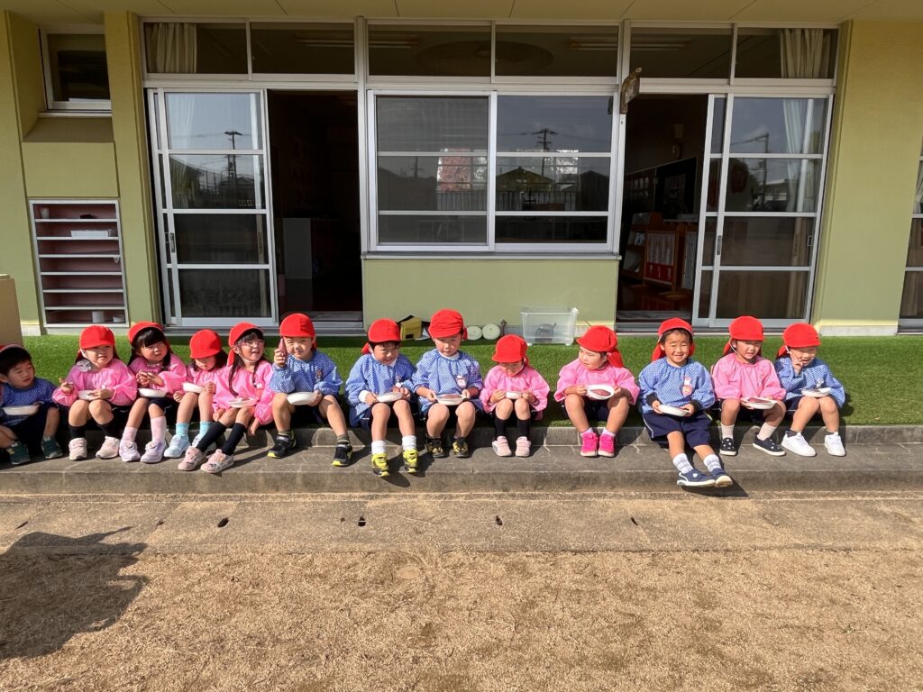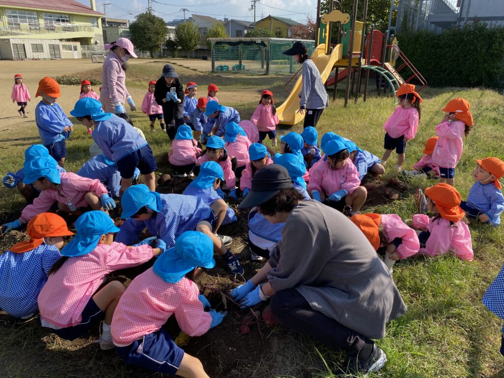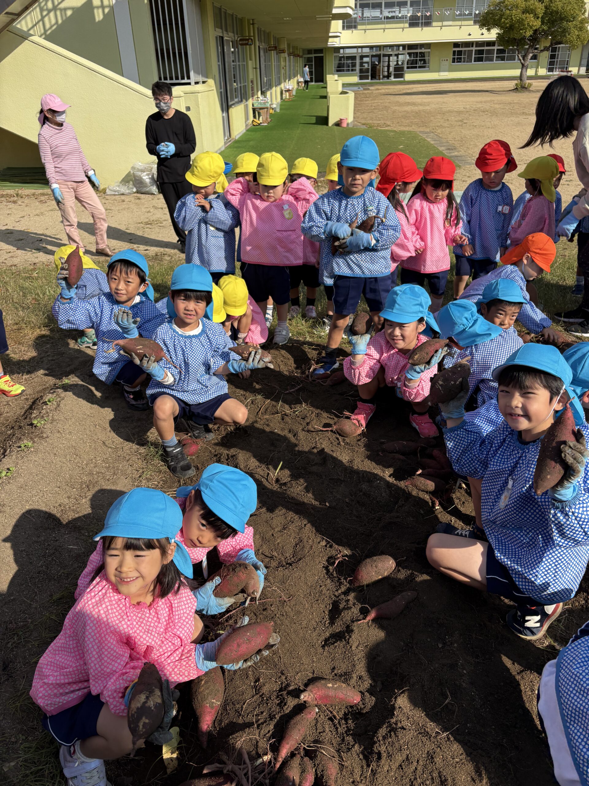 おいも掘り・おいもパーティー 2025年11月14日 #トピックス 11月14日(金曜日) おいも掘りをし、おいもパーティー をしました。 土を掘ると、きれいな色の さつまいもがゴロゴロ🍠 ひよこぐみさんも、持たせてもらいました。 「おいも、おもいよぉ~(*^_^*)」 いっぱい収穫出来ました。 まだまだ出てきたよ🍠 年長児さんが育ててくれた さつまいもは、大きくて😄 甘くてとってもおいしかったね🍠 第2回キッズサッカー巡回指導教室2025年11月13日 関連記事 2020年05月21日 #トピックス なかよし菜園だより 5月12日火曜日に苗植えをしたきゅうり・なす・ミニトマト。 年長組が、生長を […] 2018年11月02日 #トピックス 秋の遠足 11月2日金曜日、秋の遠足に行きました。 神山森林公園に到着!すだちくんが出 […] 2019年04月15日 #トピックス 入園式・新しいお友だち 4月12日 入園式を行いました。 園長先生のお話を聞きました。「幼稚園でたく […]