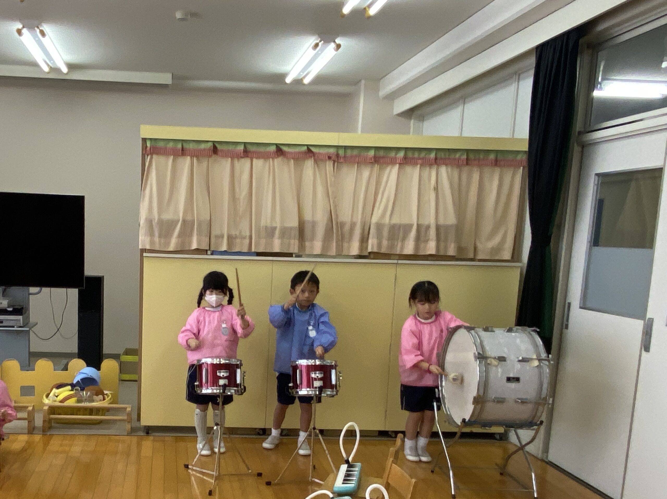 年長児の楽器あそび 2026年02月12日 #トピックス 2月12日(木曜日) 年長児が、楽器あそびをしていました。 みんなで合わせていると、小太鼓も 大太鼓もリズムをとって真剣❗❗ 歌の途中にある休符を合わせるため、 そこは手を打つようにしてみたよ♪ すると、リズムをとって、すっごい身体を 横揺れさせているお友だちもいました😀 楽しそうだったね(*^_^*) 文理小学校一味会2026年2月7日参観日に向けて2026年2月13日 関連記事 2020年01月23日 #トピックス クッキングシチューとサラダ 1月23日木曜日、クッキングでシチューとサラダを作りました。年長組がじゃがい […] 2021年12月20日 #トピックス 2学期終業式 12月20日月曜日、2学期の終業式を行いました。 みんなにお約束とお願いです […] 2024年09月30日 #トピックス 語感教育 9月30日(月曜日) 語感教育がありました。 久しぶりの語感教育! カナダか […]