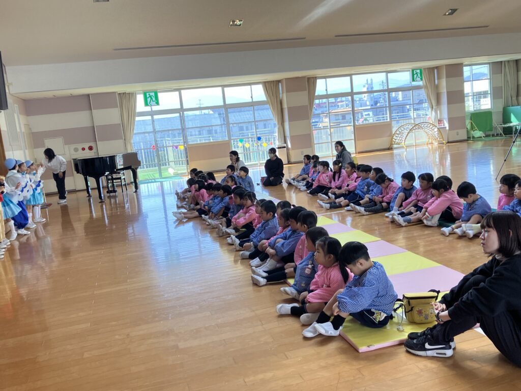 参観日に向けて 2026年02月13日 #トピックス 2月13日(金曜日) 表現会にむけて、子どもたちは励んでいます。 お客さんが見に来てくれると、気分もグン👍 とあがりました。 みんなで力を合わせているところを 見てもらいたいね! 年長児の楽器あそび2026年2月12日 関連記事 2024年06月01日 #トピックス 5歳児 参観日 6月1日(土曜日)は、年長組の参観日でした。 リズム室で、フープやボールをつ […] 2024年05月27日 #トピックス 誕生会 5月25日 (土曜日)誕生会がありました。 お家の人に、手を振って「行ってき […] 2022年05月06日 #トピックス 空豆の収穫 5月6日金曜日、年中組が空豆を収穫しました。 まず、畑の空豆を抜きます。「う […]