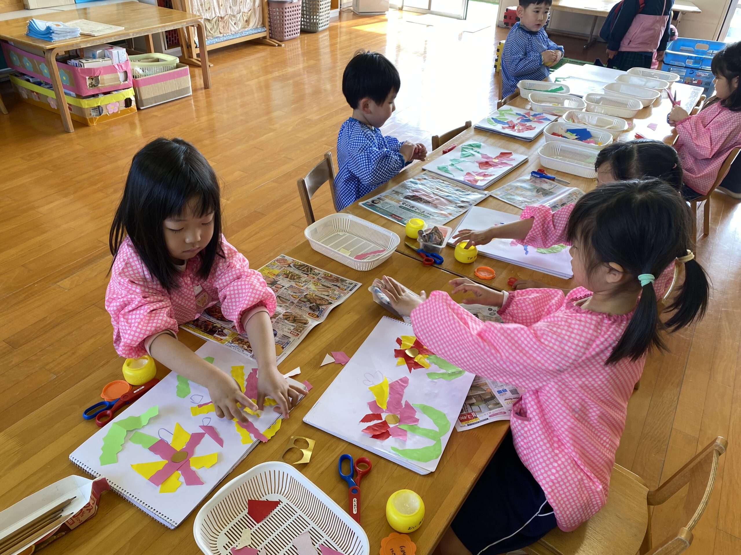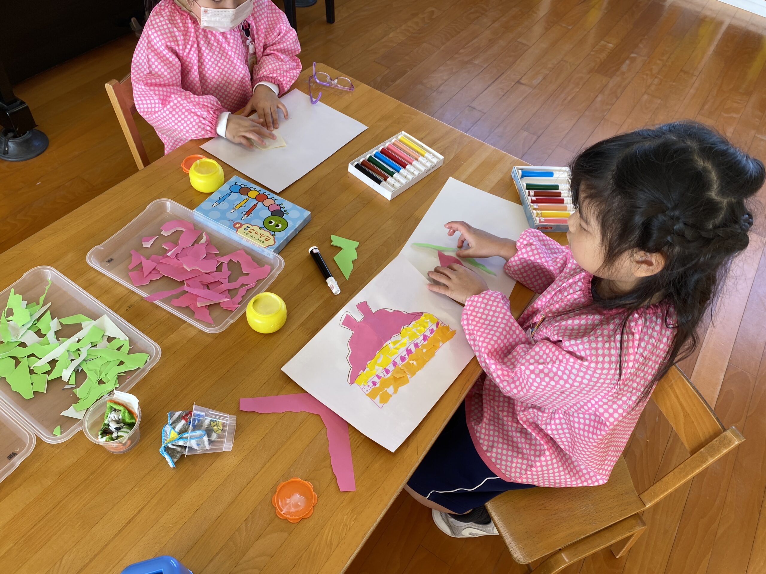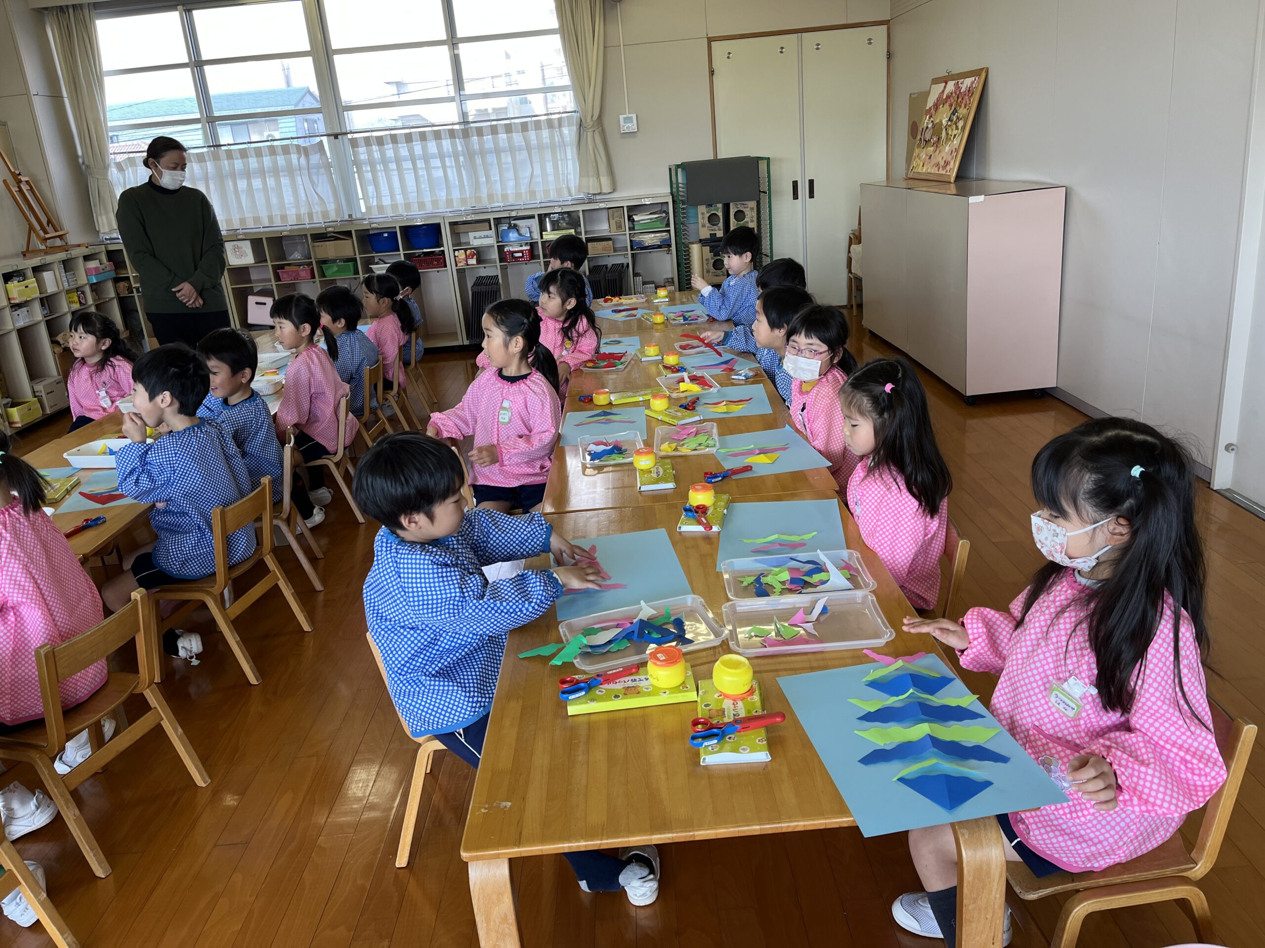 切り紙遊び 2026年03月14日 #トピックス 水曜日、美感教育で切り紙をしました。 色紙をハサミで切って魚をつくるよ🐟 「うわ~~おもしろい😄」 「魚に見えてきた~🐟」 (ハサミで切った色紙、まだあるよ❗) 後日( 3月14日)、アイデアが浮かんでやってみたよ❗ 「こんなのも出来るよね👍」 お花がいっぱい🌺🌺「かわいい~でしょ?!」 「💡いいこと考えた」 「ケーキにもなるよ🎂」 お花のつけかたも、長さによって工夫していたね。 魚の切り紙から、イメージが広がって他の切り紙を 楽しむことが出来ました🌺🎂🦇 最後の給食日2026年3月10日 関連記事 2025年09月11日 #トピックス 積み木あそび 4歳児 9月11日(木曜日) 4歳児みんなで、積み木あそびをしました。 木は自然素材 […] 2024年07月20日 #トピックス お泊まり保育2 お泊まり保育 第2弾❗ 山登りからの帰り道、買い […] 2022年12月14日 #トピックス クリスマス会 12月14日水曜日、クリスマス会をしました。 年長組のキャンドルサービスでみ […]